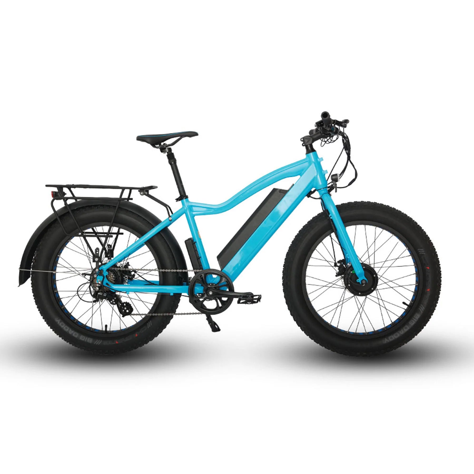 The Eunorau Fat AWD has a 250w front-geared motor, and a 350w rear-geared motor. In many states, it is legally classified as an electric bicycle, as the vehicle doesn’t exceed a total of 750w of power.