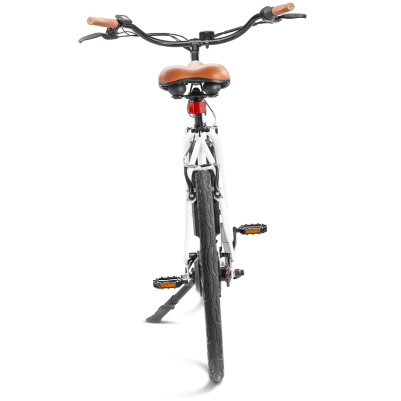 The vegan leather detailing and plush saddle make this Fleet electric bicycle comfy enough for all-day riding, while the high-quality construction ensures that your bike will last for years.